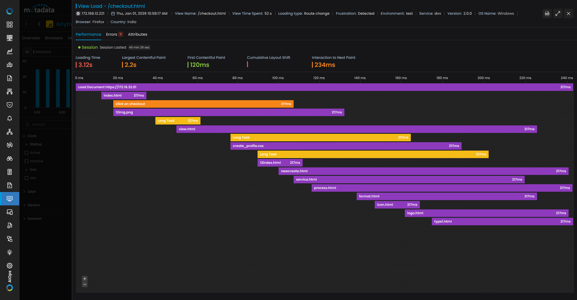 Motadata RUM delivers actionable digital experience insights from every real user session