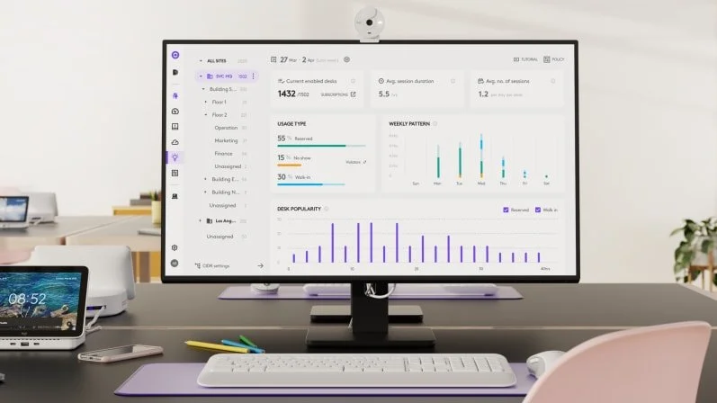 Logi Dock Flex tracks when employees plug in, so you can accurately keep track of office usage for better space planning.*